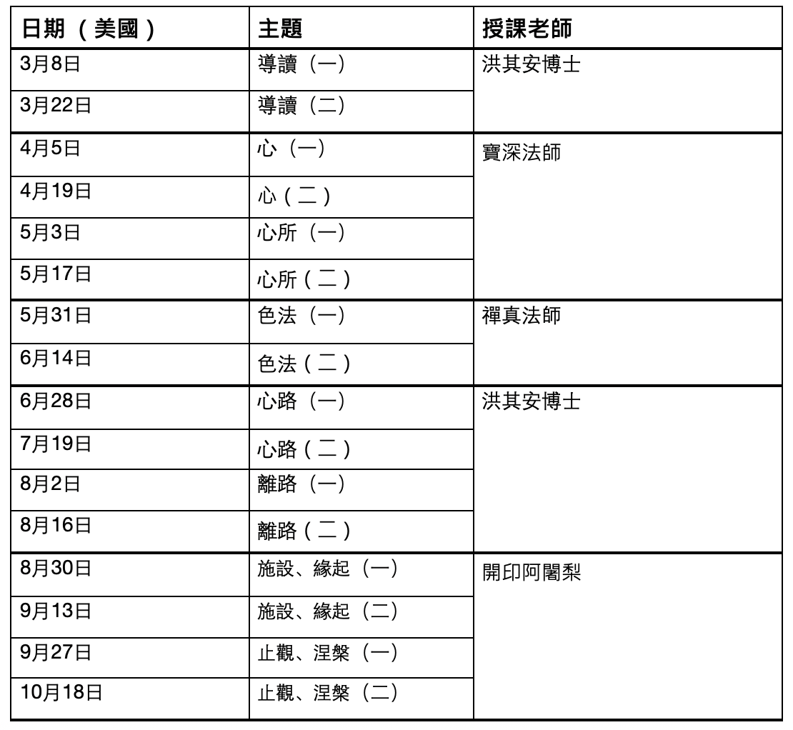 師資:​開印阿闍梨、寶深長老尼、禪真式叉尼、洪其安博士